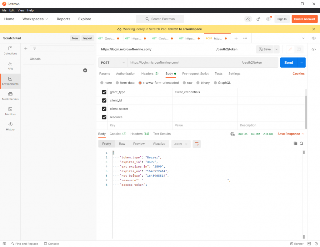 As you can see you will get a standard Bearer token in the response. Copy the ‘access_token’. We will use it in the next step.
